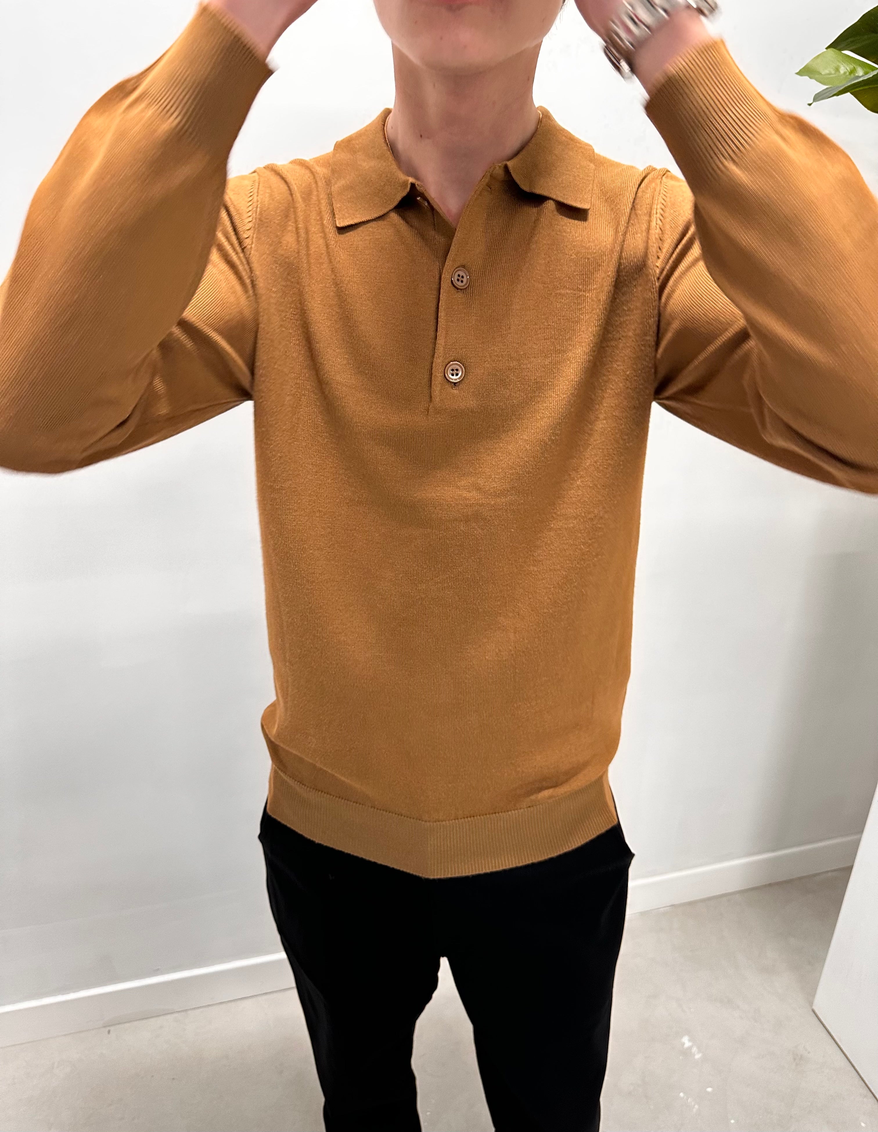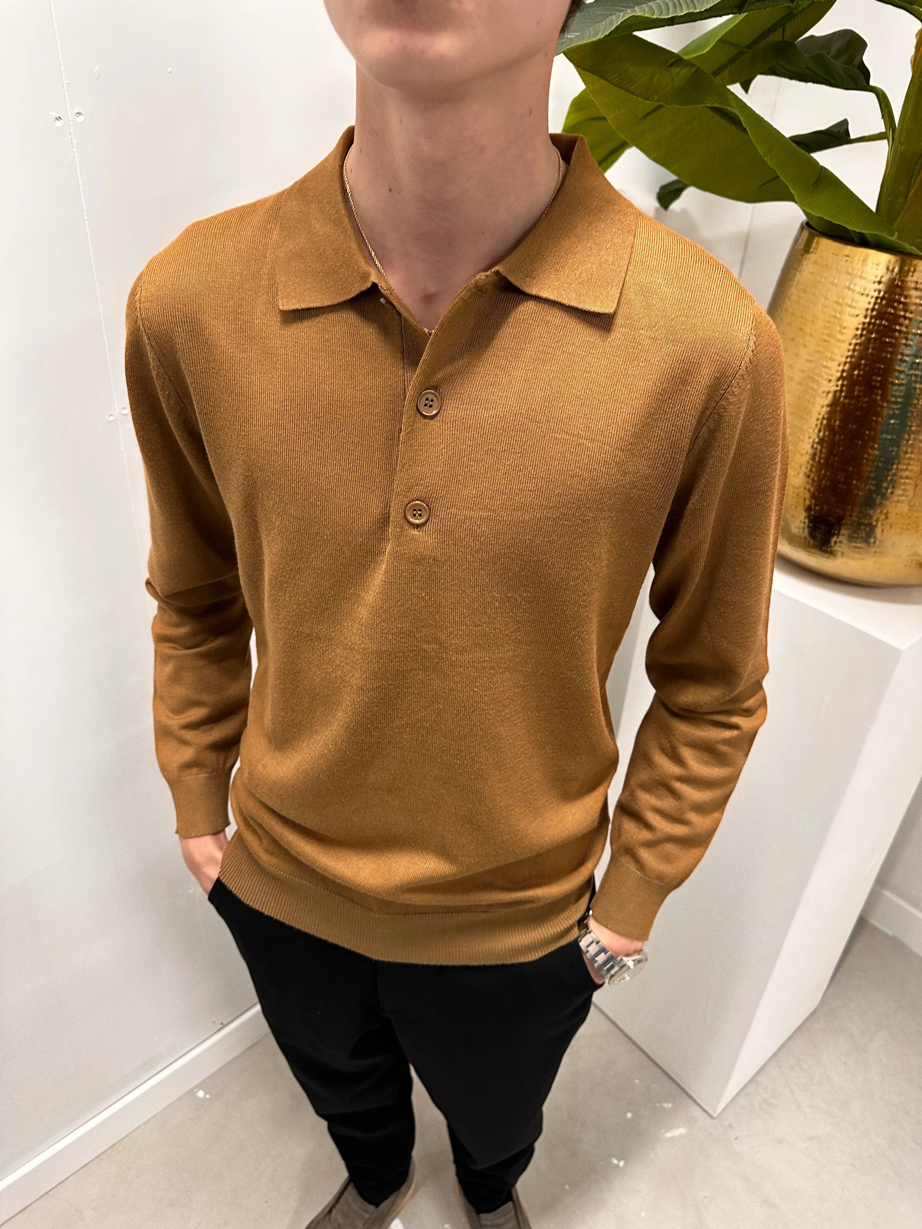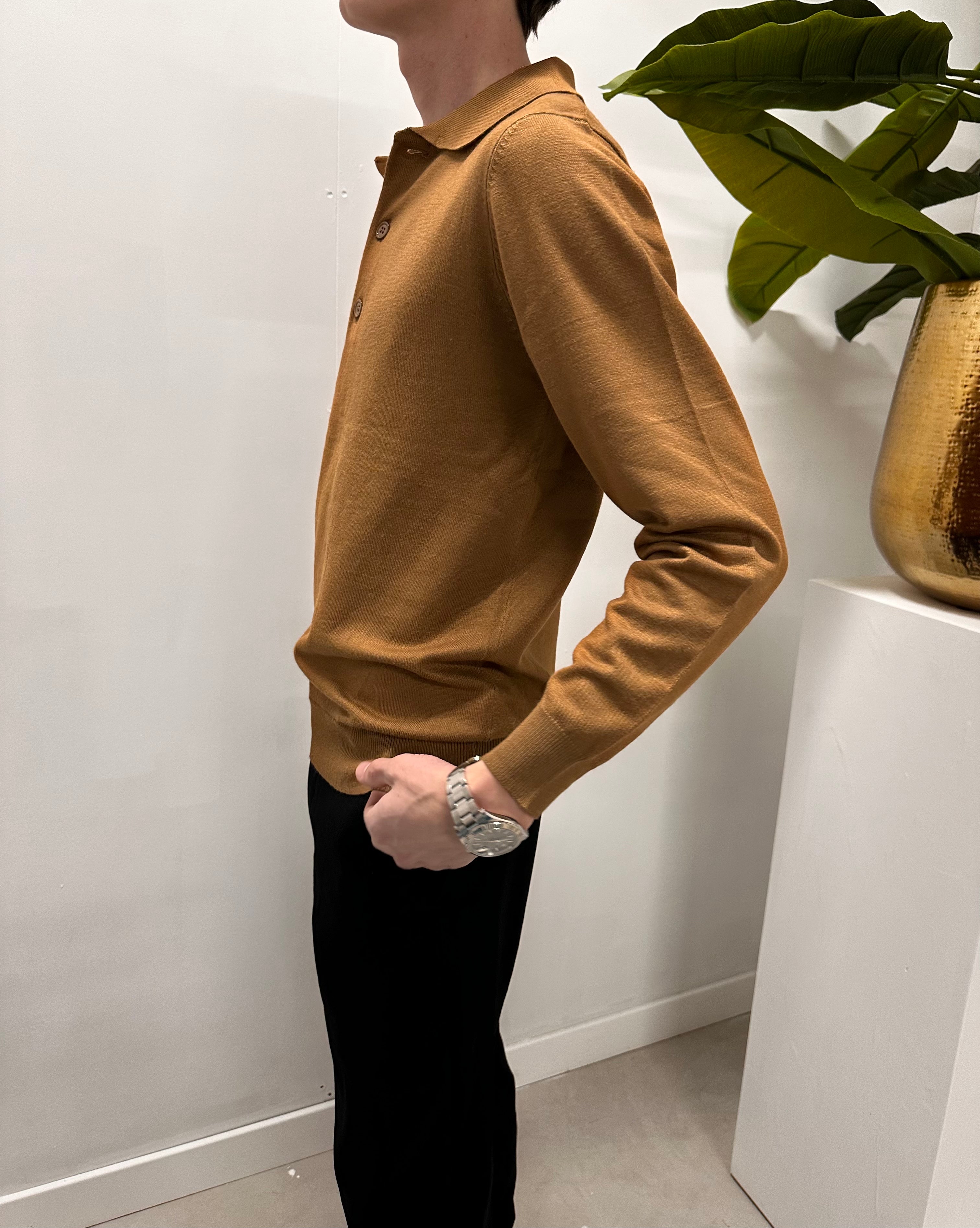 Monaco Long Sleeve Polo Shirt - Brown